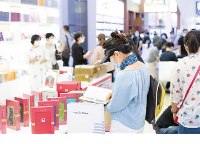 观众在2020服贸会文化服务专题展区翻阅图书。 徐金泉摄
