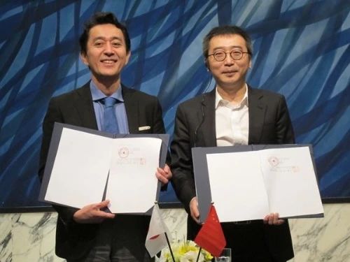 中传悦众执行董事兼总经理秦智勇(右)与CODA代表理事后藤健郎(左)签署战略合作协议