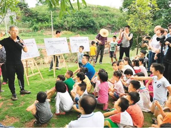 南粤古驿道第二届文化创意大赛在连州丰阳古村举办,图为“三师”志愿者与村里孩子们在一起。