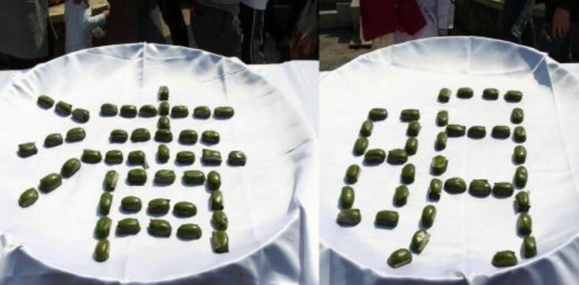 资料图:图为清明粑组合摆放成“清明”两个字(拼图)。 杨孝勇摄