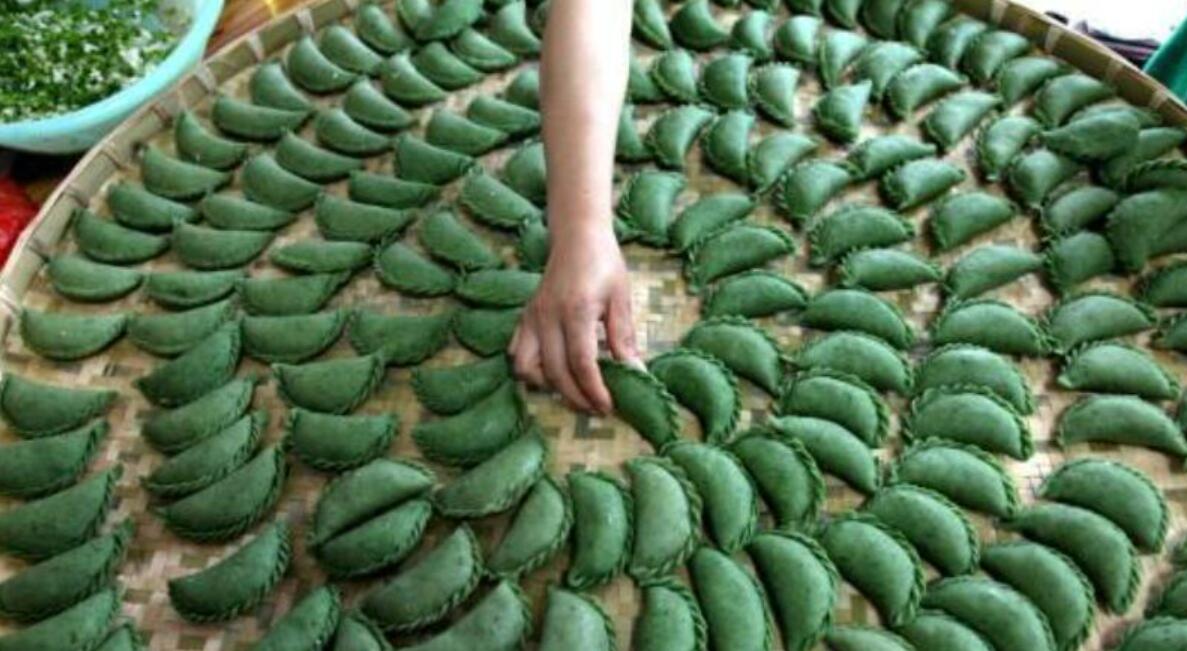 资料图:排列整齐的“清明饺”制作完成。 吴建平 摄