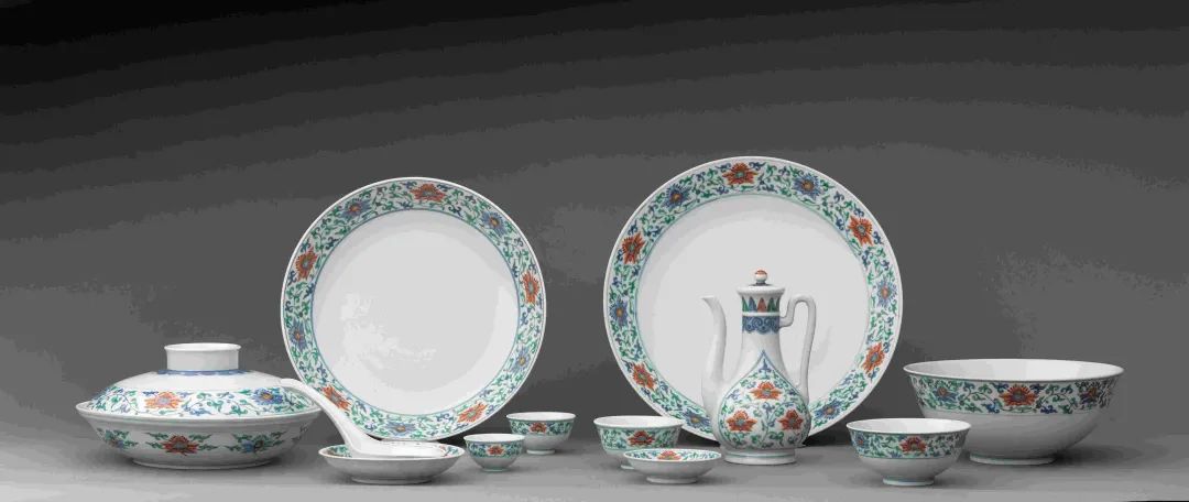 建国瓷青花斗彩牡丹穿枝中餐具(陶瓷) 1952—1954年 祝大年