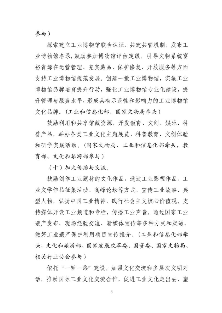 三是多部门协同。工业文化建设是一项系统工程,涉及面广,统筹难度大。《实施方案》凝聚了工信、发展改革、财政、教育、人社、文旅、国资、文物等多方面力量,各项工作都有明确的牵头单位和参与部门,形成既有统筹又有分工的工作布局,保障了各项政策、任务的落地。