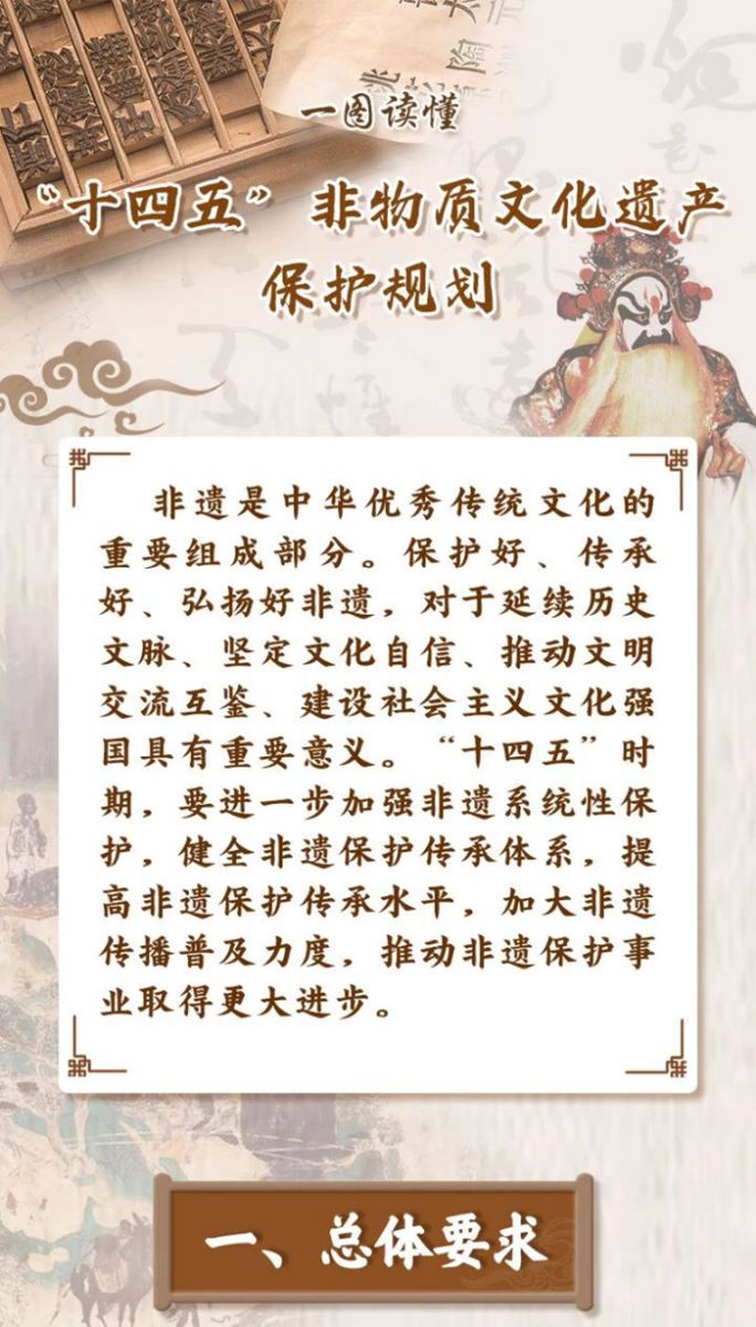 近日,文化和旅游部发布《“十四五”非物质文化遗产保护规划》(简称《规划》)。《规划》明确了“十四五”非物质文化遗产(简称“非遗”)保护的总体要求、主要任务和保障措施,系统部署“十四五”时期非遗保护工作。