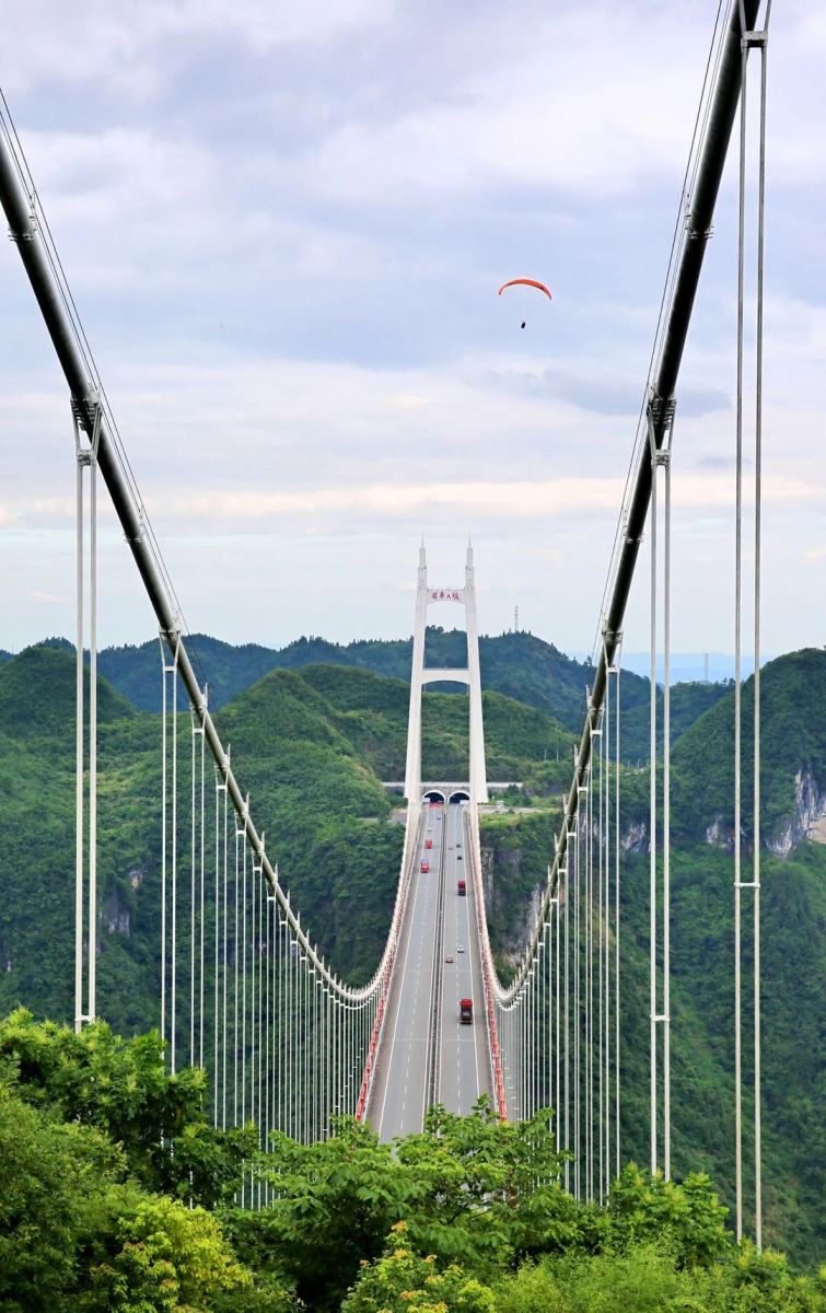 这里拥有保存完好的亚热带喀斯特植被和峡谷地貌景观、古苗寨和矮寨特大悬索桥。酷似一道彩虹的矮寨大桥,和自然共生,美不胜收。蓝天白云,青山碧水,峡谷恢弘,被NBC推荐为“十个非去不可的世界新地标”。