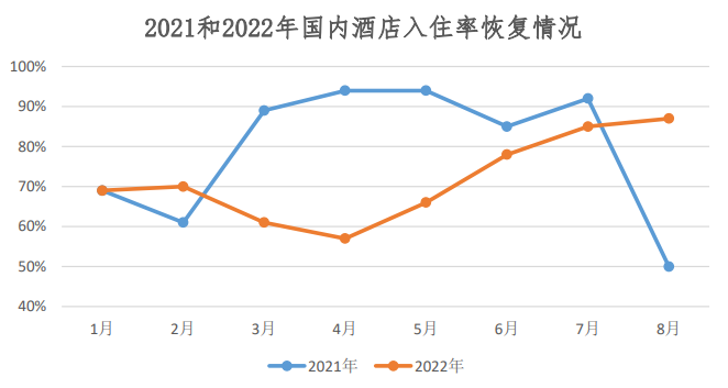 图2 2021和2022年国内酒店入住率恢复情况(数据来源:STR)