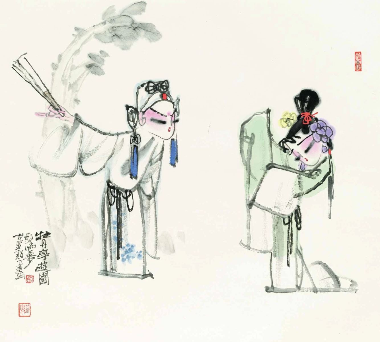 戴超的画艺儿时启蒙于蒋永茂老师,习得素描、色彩;20世纪70年代受教于潘天寿的高足刘汝沧先生,掌握了扎实的中国画笔墨、造型基础;20世纪80年代后期进入南京艺术学院,跟随刘菊清教授学习中国花鸟画;在从事戏画创作期间,戴超更是时常赴宁拜访高马德先生,伏阁受读,立雪程门,高先生感于戴超坚持勤学创作,为其题写“戴超画戏”四字,以资砥砺。