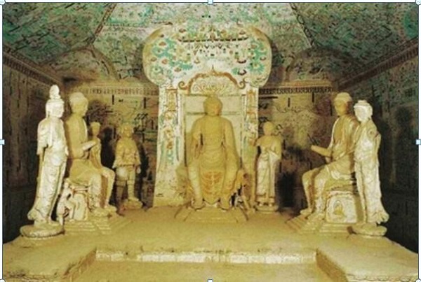莫高窟第55窟是敦煌石窟代表洞窟之一。它建于宋建隆三年(公元962年)前后,由当时归义军节度使曹元忠出资修建。洞窟现存倚坐弥勒佛像三身,菩萨像三身,弟子像一身,另塑力士像两身,是莫高窟保存最好的一组宋代彩塑,造型衣饰有唐代彩塑的余韵。第55窟面积为585.6平方米,面临自然损害的风险。