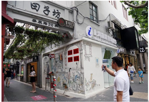 如果说外滩景区展示了上海的大气包容,那么地处城市核心区的田子坊,则体现出老上海浓浓的生活气息和味道。在田子坊独具上海特色的里弄里,各类门店、酒吧、文创工作室等挤挤挨挨,在窄小的弄堂里迎接着中外游客。更让人惊奇的是,在这里至今还生活着133户老上海居民,商居双方在田子坊和谐相融,共同分享城市建设发展成果。