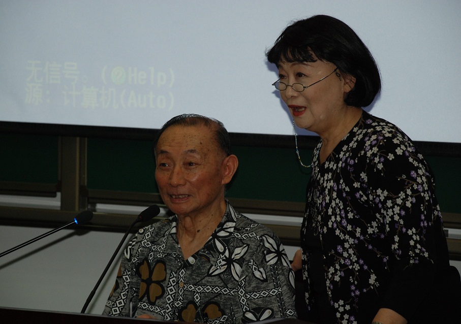 图二:在叶金援先生的陪同下,梅葆玖先生莅临我院讲学
