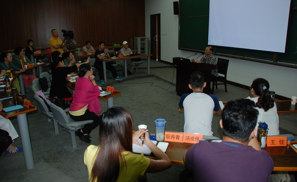 图四:班主任胡芝风代表中国戏曲表演艺术高级研修班全体学员热烈欢迎梅葆玖先生讲学