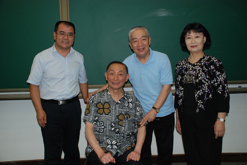 图七:梅葆玖先生与原中国戏曲学院副院长赵景勃先生、班主任胡芝风、中央文化管理干部学院党委副书记兼艺术学院院长景小勇合影