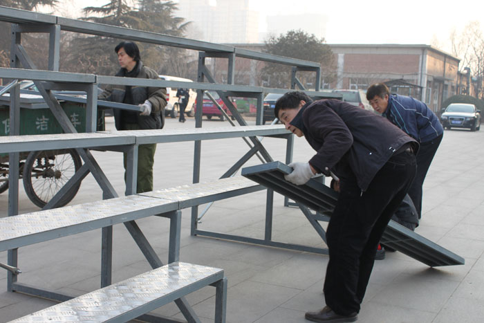 随着我院培训事业的蓬勃发展,近两年来我院承接的培训项目越来越多,集体合影架租用次数大幅度增加,且每次租用费用很高。为积极落实院领导“勤俭办事业”的要求,总务处维修科充分发挥专业特长,集思广益,自己设计图纸、自己采购材料、自行施工,克服了人员年龄偏大、知识结构偏低、劳动强度大等种种困难:遇到设计难题就请教单位内外的专业人士,缺少专业设备他们就想方设法向施工单位临时借用,他们在不影响正常工作任务的前提下,用20多天时间就制作完成了一套能供120人集体合影架子一套,仅花费了6000元材料费,从2012年3月投入使用以来,他们主动承担了合影架的安装和拆卸任务80多次,仅去年1年就为学院节约资金8万余元。