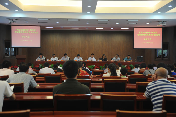 7月16日下午,我院召开党的群众路线教育实践活动动员大会。张旭院长作动员部署,文化部第5督导组组长张永新同志作重要讲话。文化部第5督导组成员、学院领导班子成员和全体在职党员、离退休党员代表、群众代表参加了会议。会议由我院党委书记周庆富同志主持。