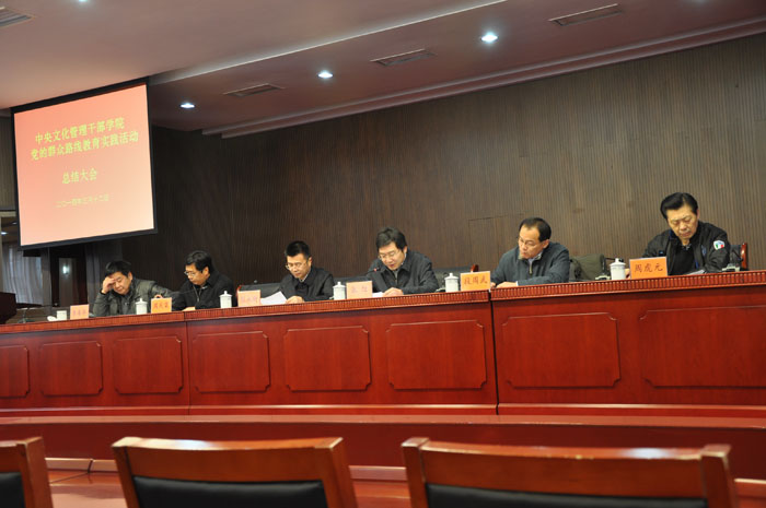 按照中央和文化部党组的部署及学院党的群众路线教育实践活动安排,3月12日上午,我院在报告厅举行党的群众路线教育实践活动总结大会。文化部第五督导组组长张永新、我院领导班子全体成员、第五督导组成员和全院职工出席了会议。张旭院长代表学院党委作教育实践活动总结报告。张永新代表督导组作重要讲话。我院党委书记周庆富主持大会。