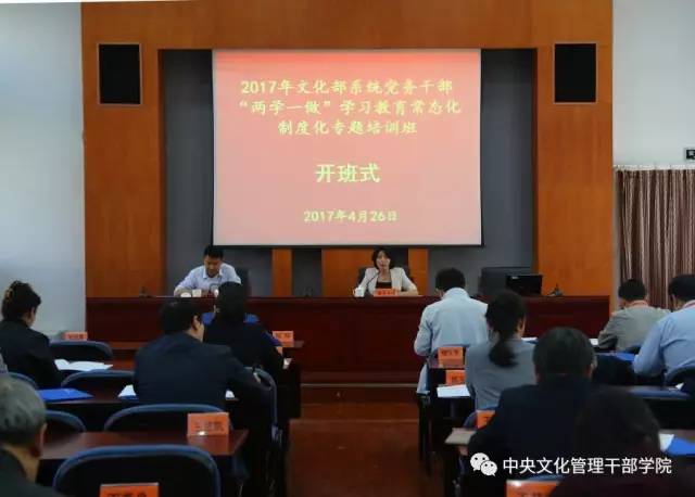 为贯彻落实中共中央《关于推进“两学一做”学习教育常态化制度化的意见》精神,4月26日至28日,文化部系统党务干部“两学一做”学习教育常态化制度化专题培训班在我院举办,来自文化部机关司局和直属单位的48名党务干部参加了培训。