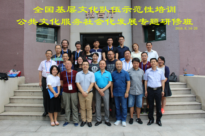 2016年8月14日至20日,全国基层文化队伍示范性培训公共文化服务社会化发展专题研修班在我院举行,这也是全国基层文化队伍示范性培训系列中的重要培训班。在开班典礼上,受院领导委托,中央文化管理干部学院培训部主任刘瑞彪作开班动员,中央文化管理干部学院培训部杨明主持。