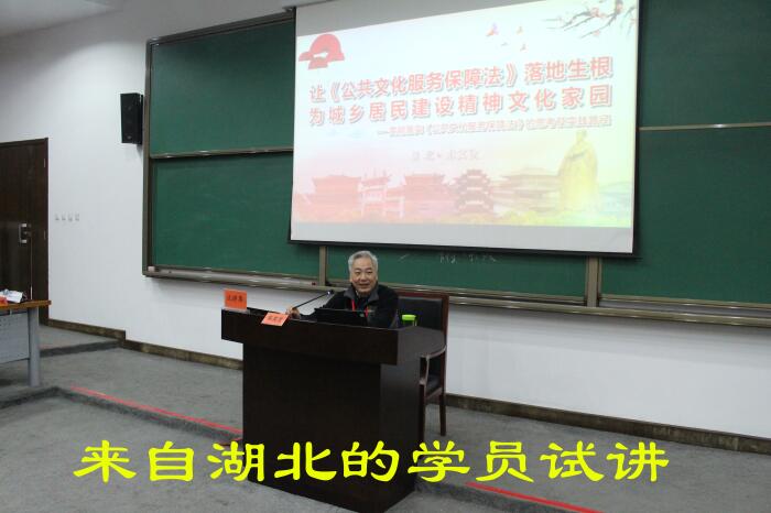 学员们说,本次学习最大的收获,无疑就是有幸聆听了文化部杨志今副部长、全国人大教科文卫委员会文化室主任朱兵、国家公共文化服务体系建设专家委员会主任李国新对《公共文化服务保障法》的解读,大家认为,这是以习近平同志为核心的党中央全面实行依法治国战略在文化领域的重要实践,也是文化领域具有“四梁八柱”性质的一部基础性法律,对于保障人民群众的基本文化权益、满足人民群众精神文化需求具有重要意义,对我们学习贯彻以及回到各地宣传保障法,进行了及时有效的授课辅导。同时,根据课程安排,组织了6场学员讲堂,每位学员围绕《保障法》相关内容试讲半小时时间,最后依据德艺双馨标准,学员互评选拔出优秀师资骨干进入师资库,也将作为推荐地方公共文化服务培训工作的优先师资人选。