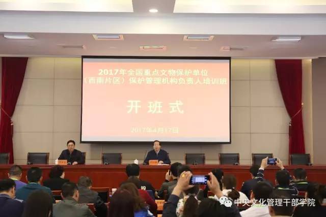 4月16日至22日,2017年全国重点文物保护单位西南地区保护管理机构负责人培训班在我院举办。来自重庆、四川、贵州、云南等四省市国保单位117位负责人参加了学习。文化部党组成员、国家文物局党组书记、局长刘玉珠为学员作开班动员并讲授第一课,我院院长周庆富主持了开班式。