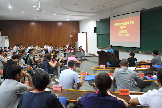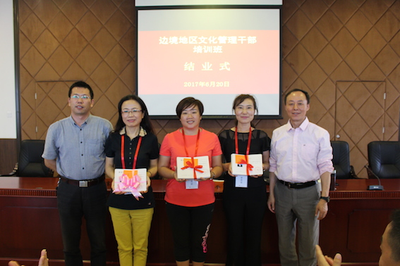 6月15日至21日边境地区文化管理干部培训班在我院成功举办,这是落实《文化部关于加强边境地区文化建设的指导意见》的重要举措。开班伊始,文化部人事司副司长刘莉颖和我院党委书记段周武出席开班式并讲话。课程设置讲究精准性,针对性,可谓量身定制,既有“一带一路”文化发展战略政策的解读,又有边境文化、特色文化产业、文化创作生产和文化遗产保护理论的阐述,既有正反两方面生动案例的展示,也有现场观摩的亲身体验,让学员们不仅开阔了视野,提升了素质,而且锻炼了意志,提升了交流能力和工作能力,培养了团队学习的意识。结业时,主办方人事司培训处调研员副处长李伟出席并讲话,对培训班的圆满举办,给予了充分肯定。据教务处提供的学员满意度测评统计数据显示,培训部项目工作团队的优秀率达到100%。