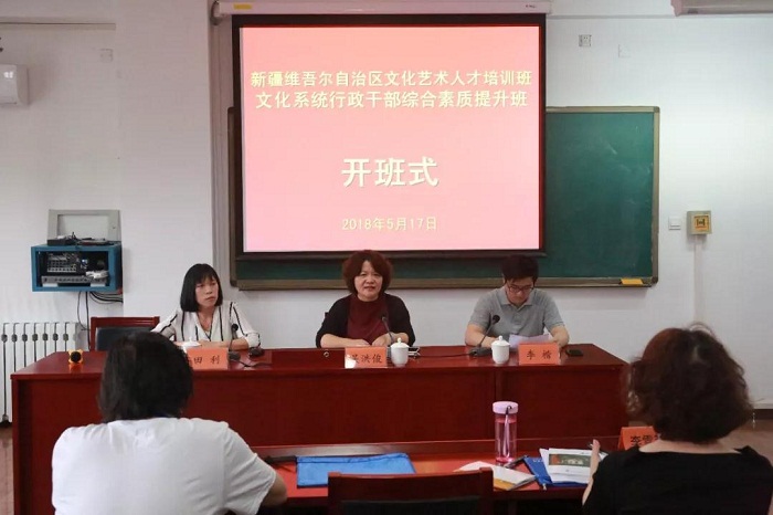 5月17日上午,由新疆维吾尔自治区文化厅和我院联合举办的新疆维吾尔自治区文化艺术人才培训—文化系统行政干部综合素质提升班在我院开班。来自新疆文化厅、新疆艺术剧院、新疆文联以及十个地州的34位文化干部与企业家参加学习。
