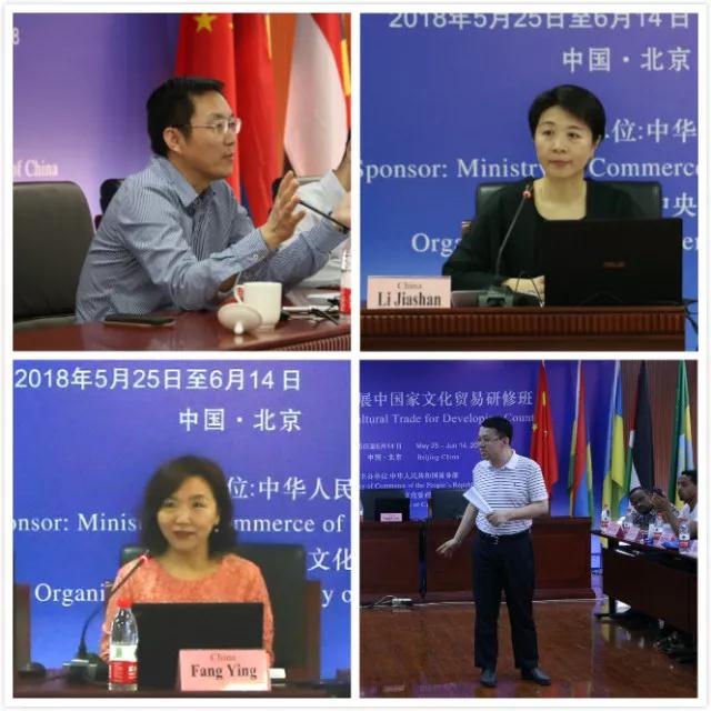 专业课层面,特邀来自中央财经大学文化经济研究院、北京第二外国语学院国家文化发展国际战略研究院、中国传媒大学经济管理学院的多位专家学者就中国文化产业新格局与新趋势、国际文化贸易理论与政策、中国文化贸易发展模式、文化企业运营与国际化发展、中国文化贸易政策与丝路国家文化贸易、国际文化贸易投融资支持体系进行深入浅出、循序渐进的讲授,并与学员座谈交流。