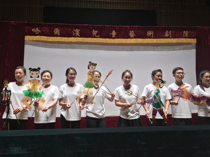 2006年,皮影戏入选我国第一批国家级非物质文化遗产名录;2011年,入选人类非物质文化遗产代表作名录。“皮影”是对皮影戏和皮影戏人物制品的通称。皮影是我国出现的最早的戏曲剧种之一。研讨班邀请到哈尔滨市儿童艺术剧院的皮影戏专家和非遗传承人为大家呈现了一场精彩的皮影戏演出。