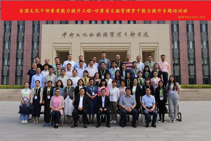 为贯彻落实甘肃省《关于印发〈边远贫困地区、边疆民族地区和革命老区人才支持计划文化工作者专项选派培养工作实施方案〉的通知》要求,扎实推进文化和旅游融合发展,甘肃省文化和旅游厅与我院共同举办的“全国文化干部素质能力提升工程-甘肃省文旅管理骨干能力提升专题培训班”于近日结业,来自甘肃省14个地市、自治州的50名管理干部及业务骨干参加了培训。