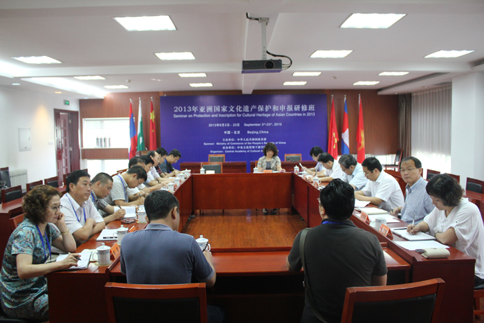 为了搭建交流平台,拓宽学员的国家事视野,充分发挥学院资源作用,艺术教育部和国家交流部共同策划举办了“2013世界文化遗产保护亚洲论坛”,来自柬埔寨、巴基斯坦等五个国家的20位外籍学员与本期培训班学员代表参加了论坛活动。中外同行同聚一堂,交流文化遗产保护的经验与做法是一次难得学习机会,学员们深感收获颇丰。本期培训班于9月11日结束。第十六期培训班培将于10月中旬举办。