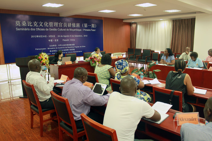 此次研修班由来自莫桑比克共和国的20名文化管理官员组成,包括莫桑比克文化部各司局官员,各省文化厅局官员,以及国家博物馆、演艺中心经理等。研修班将邀请文化部和我院相关领导专家系统介绍我国文化发展概况,内容涵盖中国传统美学、社会文化、艺术管理、文化产业等方面的内容,全面介绍我国的文化管理经验和文化发展道路,并邀请中莫两国文化管理高级官员与专家座谈交流。研修班还将参观考察我国具有代表性的文化设施和世界文化遗产。研修班将于9月6日结业。