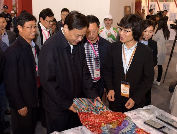 编者按:2014年文化部、财政部联合启动了文化产业创业创意人才扶持计划,通过在全国范围内征集作品,发现、培养、服务青年创业创意人才(文中简称“双创”人才),形成在全社会重视培养创业创意人才的带动性、示范性和引领性效应。该计划由中央文化管理干部学院组织实施。2016年4月27日至30日,我院在第11届中国(义乌)文化产品交易会上设立了独立展区免费展示入选的创意设计作品,同时成功举办了青年设计师沙龙和项目推介活动。