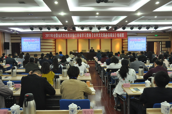 按照文化部公共文化司全国基层文化队伍培训工作计划安排,2017年全国公共文化巡讲江西省培训班于4月18日至20日在井冈山市举办。江西省各设区市文广新局分管副局长、社文科科长,各市、县(市、区)文化(群艺)馆长等约150人参加培训。