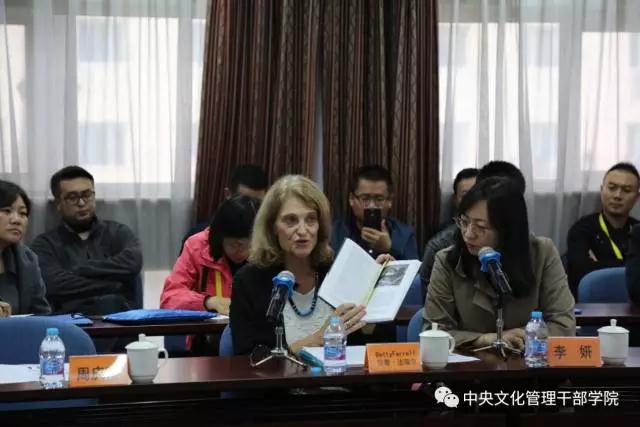 主题研讨活动重点围绕中美文化艺术设施运营状况、我国公共文化服务设施社会化运营情况和中美社区文化治理等主题进行了深入交流。贝蒂·法瑞尔教授在主旨发言中,重点介绍了美国文化艺术设施的建设和运营情况,并以芝加哥、洛杉矶、纽约等美国几个城市为例,介绍了美国文化政策制定的过程,分析了文化对社区乃至城市建设的重要作用。期间,与会专家和学员就相关问题与贝蒂教授进行了热烈讨论。