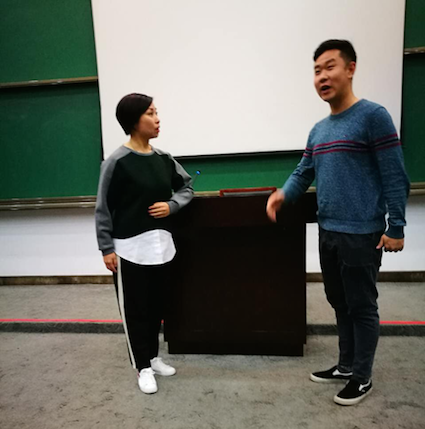 3月6日-10日,是文化部组织的第十七期“文艺工作者培训班”的培训时间。在这段难得的5天时间里,来自文化部下属国企和事业单位的210名同志相聚在大兴中央文化干部管理学院,大家分为10个小组,同吃同住同学习。并利用课余时间组织了诸如舞蹈培训、京剧扫盲和健身活动等丰富多彩的兴趣小组,让同学们加强沟通联系,真正做到了培训宗旨“一期同学,一世朋友”的理念。身为第四小组的成员之一。为了实现“破冰”活动中小组“四组精英 文化会友 团结共进 挥斥方遒”的目标口号,继3月8日晚,由中国歌剧舞剧院许宁副院长为大家作的“舞蹈与舞剧”的精彩报告之后,3月9日晚,在报告厅第一教室,我们组织了一场别开生面的主题为“京剧艺术审美与赏析”的讲座。论坛特邀国家京剧院张正贵讲解,优秀京剧艺术家郭瑶瑶、金建萍、张艺、朱江、韩富超示范表演。活动吸引了文化部系统各单位的50余名学员,其中不乏京剧的爱好者。大家汇聚一堂,听讲解者张正贵娓娓道来京剧艺术的历史沿革、艺术特征,国家京剧院的历史变迁,并讨论在新的时代下,应该如何做好国粹京剧的传承、创新和发展等问题。张正贵的讲解,引起学员们的热烈反响与回应,几位学员热烈讨论并表达了自己对于京剧艺术传承、演出和传播的看法。分享的过程中,同学们都有幸近距离的欣赏到了众多优秀京剧艺术家们的精彩示范和表演。优秀青年演员韩富超的老生开场赢得了满堂喝彩,并给大家教授了不少京剧的基本概念和表演方式;资深京剧演员金建萍老师的花旦亮相引来一片叫好。作为一位老艺术家,能将十几岁的花旦角色表演得如此鲜活,可见功底之深厚。优秀青年作曲朱江为大家现场解答了有关京剧音乐方面的问题。身材苗条瘦削的艺术家张艺,表演起刀马旦来精神抖擞,巾国不让须眉。尤其是潇洒干练的上马动作,立刻圈粉无数。郭瑶瑶演示并讲解了老旦的唱腔和表演,并对比演示了不同身份不同形象的人物演绎方法,特别是她的唱腔足以让人深刻理解台上一分钟,台下十年功的不易。郭瑶瑶和郭富超一起表演得样板戏《军民鱼水情》将活动气氛带到了高潮。活动持续了2个小时,在大家的意犹未尽中完美谢幕。