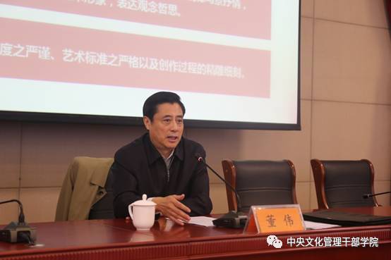 根据教学安排,学员与全国文艺院团长培训班、吉林省文化创意与舞台艺术创作研修班的学员们一起聆听了文化部党组成员、副部长董伟所作的“牢记作品是立身之本,创作无愧于时代的优秀作品”专题报告。董伟指出,创作生产优秀作品是文艺繁荣发展的根本,优秀文艺作品是思想性和艺术性的有机统一,要做到有筋骨、有道德、有温度,做到思想精深、技艺精湛、制作精良。他要求大家沉心静气搞创作,将创新精神贯穿于文艺生产全过程。