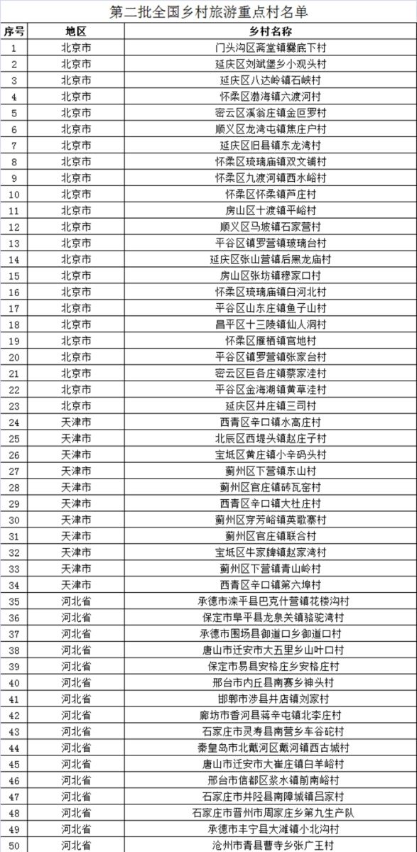 文化和旅游部 国家发展改革委关于公布第二批全国乡村旅游重点村名单的通知