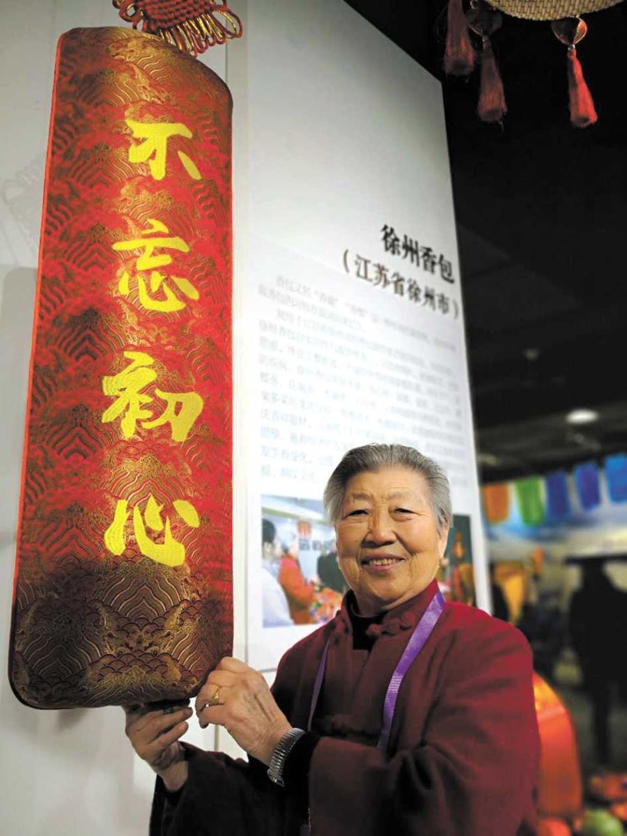 非遗传承人王秀英与其“放大版”针棒香包 王彬摄