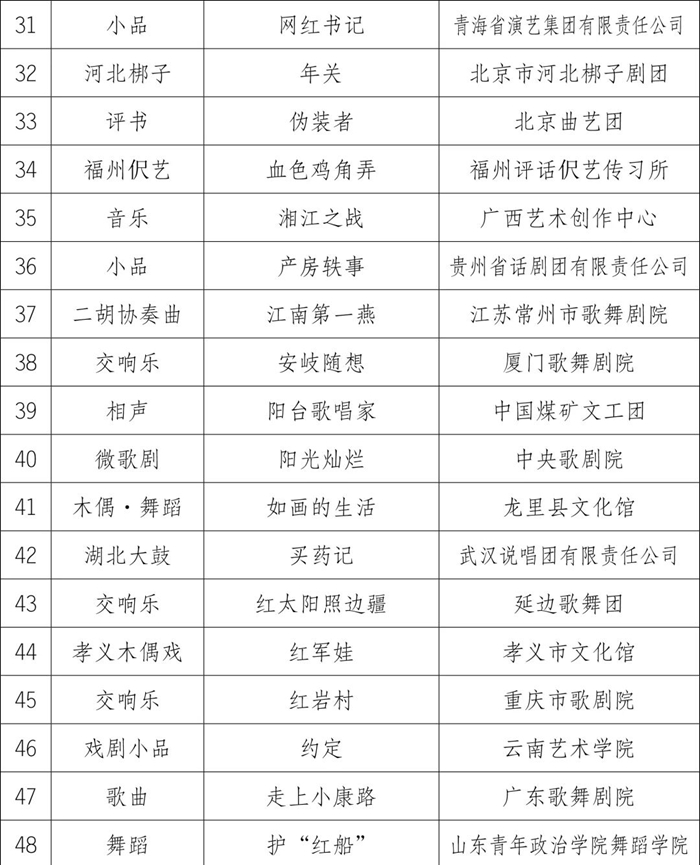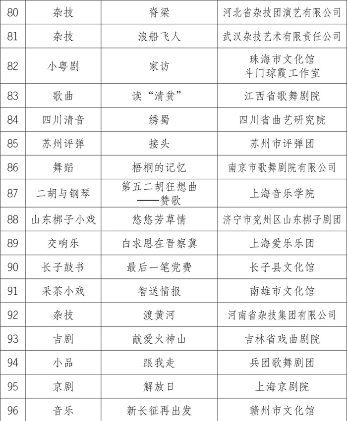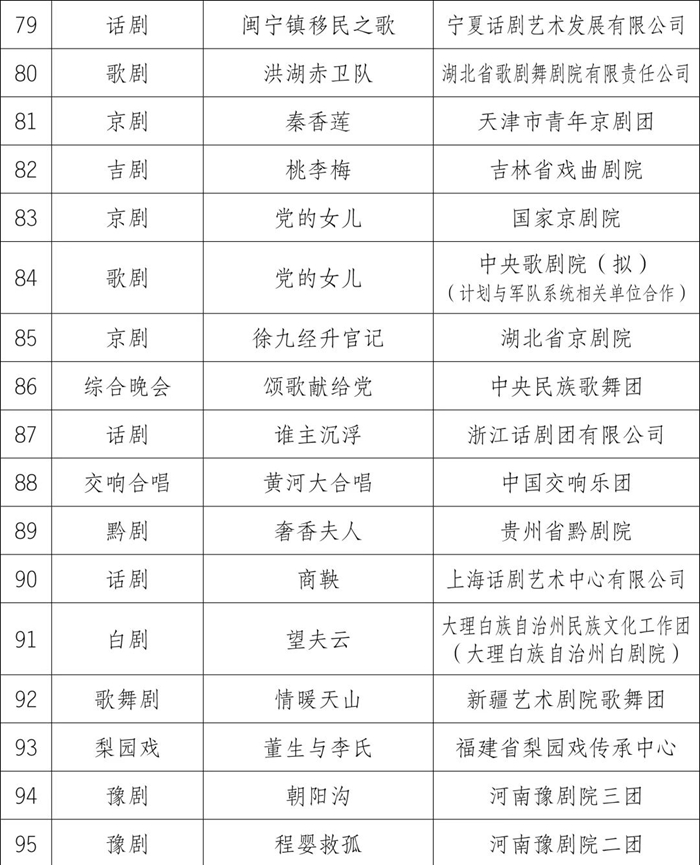 附件:“庆祝中国共产党成立100周年舞台艺术精品创作工程”重点扶持作品名单