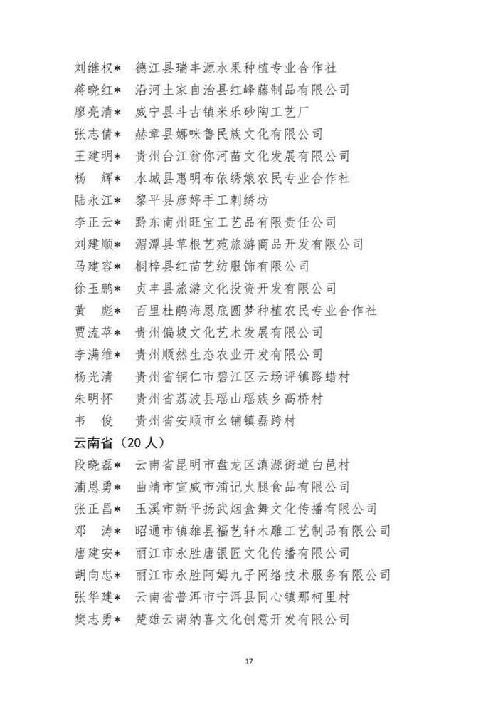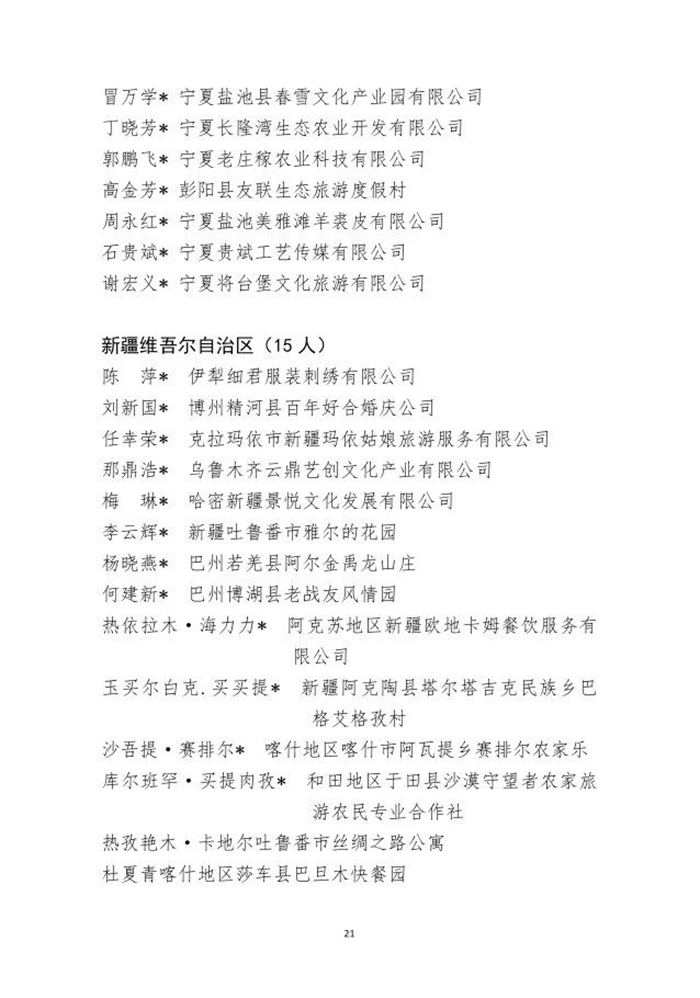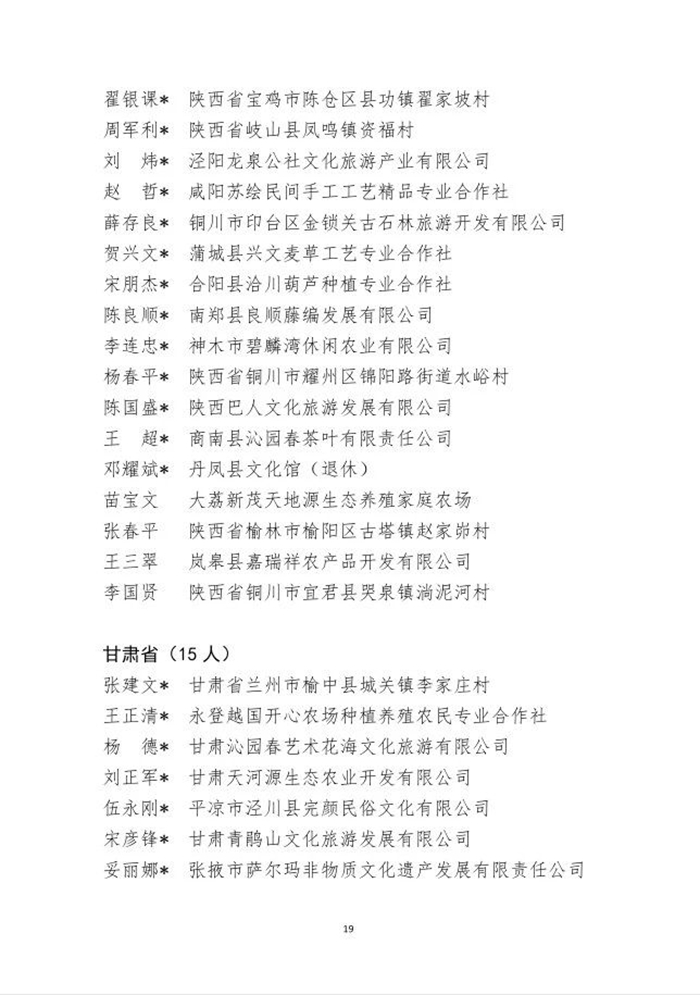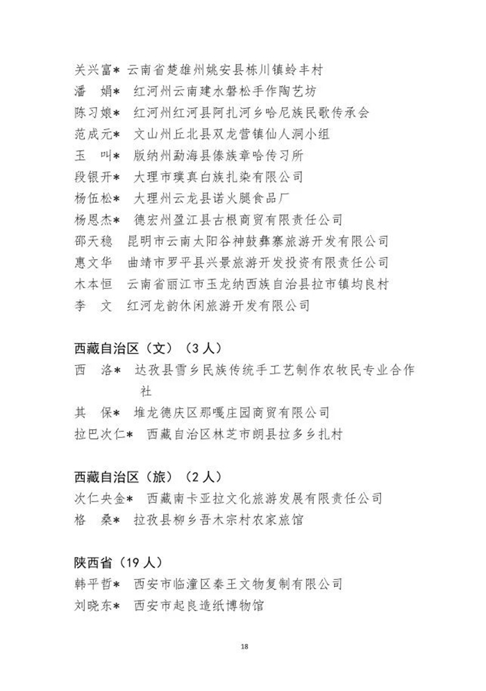 近日,文化和旅游部发布《2020年度乡村文化和旅游能人支持项目入选人员名单(478人)》,名单如下——