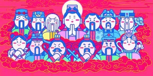 “年画话年”表情包制作团队对神仙形象做的萌化设计。
