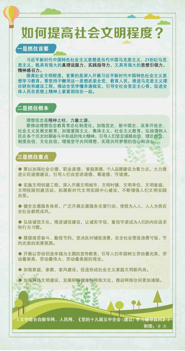 习近平总书记强调,文化是一个国家、一个民族的灵魂。文化自信是更基础、更广泛、更深厚的自信,是更基本、更深沉、更持久的力量。从乡村到城市,从线下到线上,提高社会文明程度,要坚持面向基层、重心下移,把文明理念融入日常生活,把价值要求植入群众心中,让社会主义核心价值观“日用而不觉”。要把培育弘扬社会主义核心价值观作为根本任务,更好满足人民日益增长的精神文化需求,不断丰富人民精神世界、增强人民精神力量,保护好传承好弘扬好中华优秀传统文化,传承革命文化、发展社会主义先进文化,建设中华民族的精神家园,为经济社会高质量发展赋能。