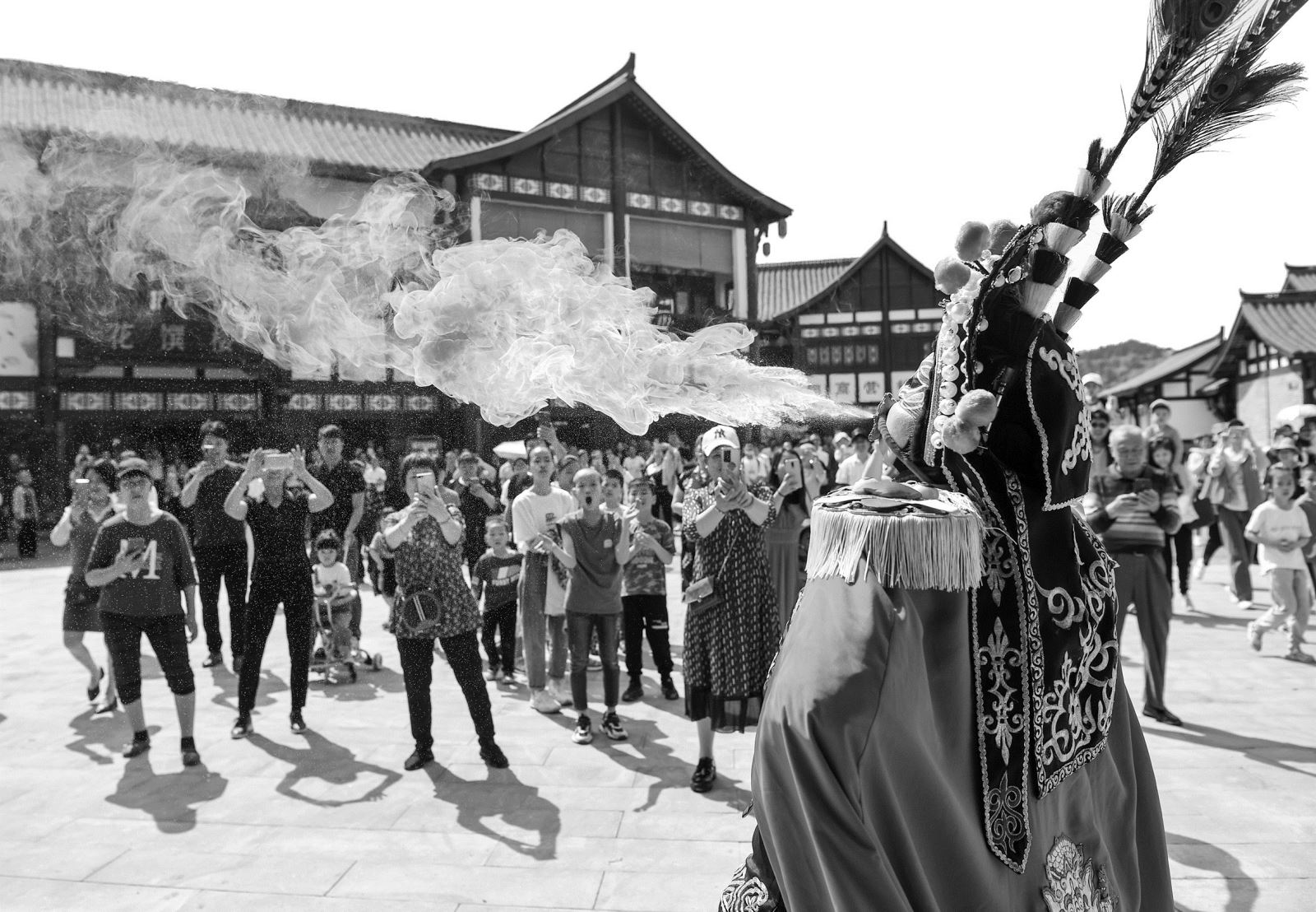 相如故城内,民间艺人在表演川剧《吐火》。 刘永红 摄