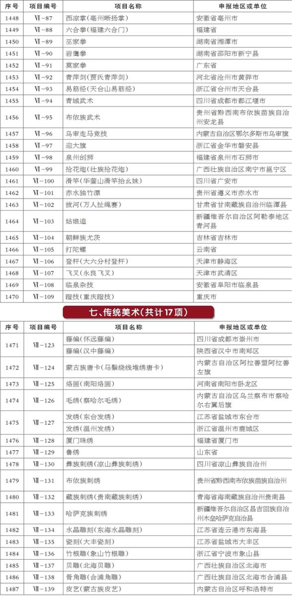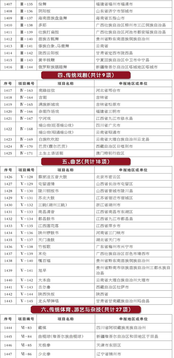国务院批准文化和旅游部确定的第五批国家级非物质文化遗产代表性项目名录(共计185项)和国家级非物质文化遗产代表性项目名录扩展项目名录(共计140项),现予公布。