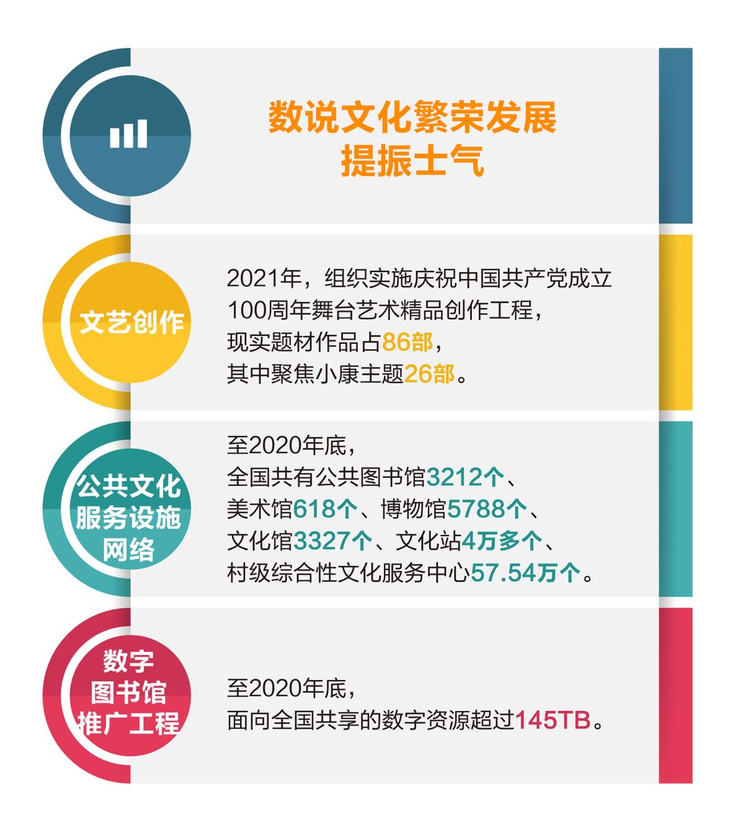 在奔小康的征程中,文化“软”实力一直发挥着“硬”支撑的强大作用。文化和旅游部致力于推动文化繁荣发展,为全面建成小康社会凝神聚力。