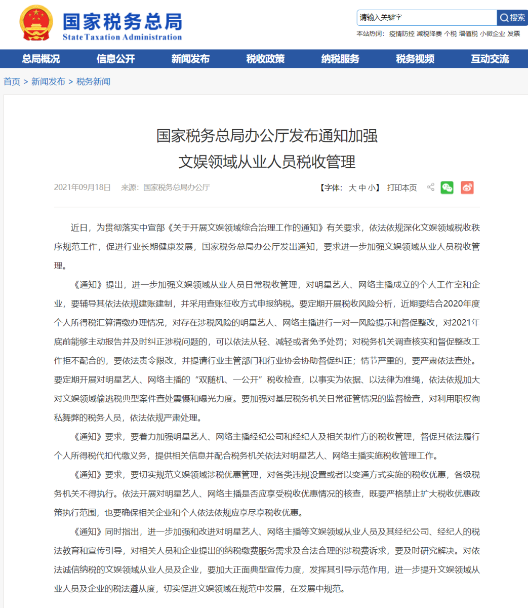 国家税务总局办公厅发通知 加强文娱领域从业人员税收管理