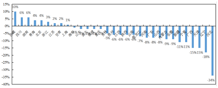 图3 2021年较2019年各省恢复率