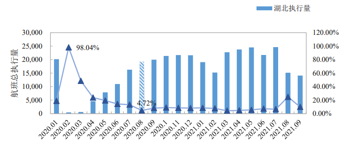 图4 2020-2021年湖北省航班执行总量与取消率