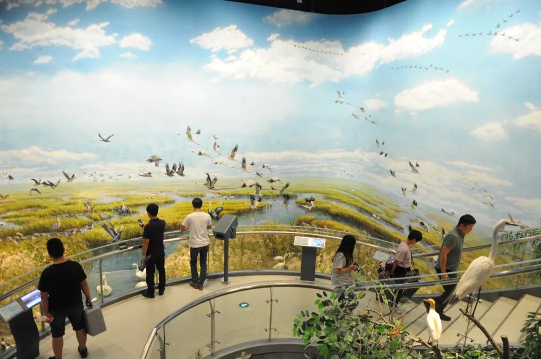 游客在黄河三角洲鸟类博物馆参观