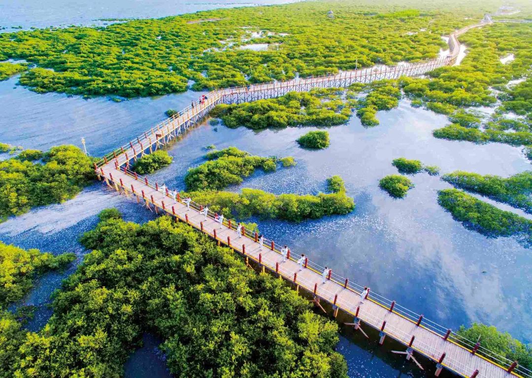 北海滨海国家湿地公园范围内,红树林面积约3000亩的金海湾红树林生态旅游区已成北海滨海旅游的网红打卡点。这里是北海市“生态立市”的窗口,也是创新“旅游+生态+文化”模式的缩影,年均接待游客量40万人次以上。
