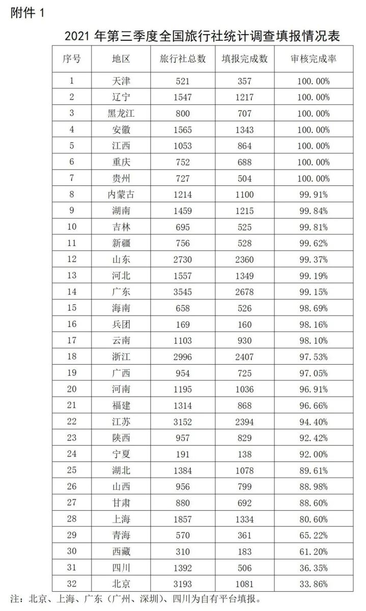 1. 2021年第三季度全国旅行社统计调查填报情况表